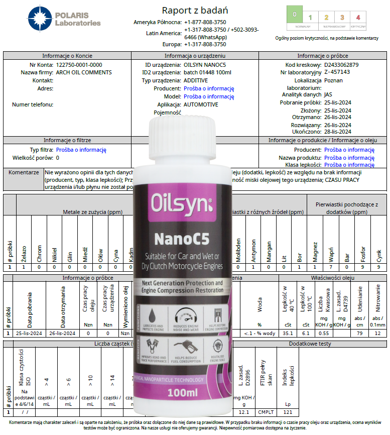 WŁAŚCIWOŚCI FIZYKO-CHEMICZNE OILSYN nanoC5